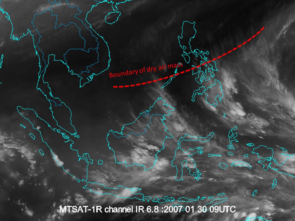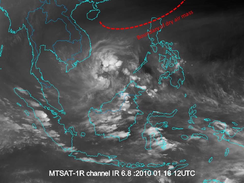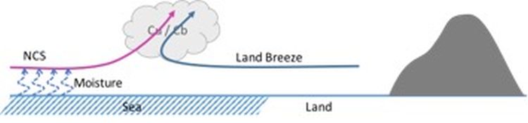 As an NCS propagates towards the equator, it collects moisture from the ocean via enhanced vertical moisture fluxes. Moisture convergence is enhanced in the SCS by the presence of the Borneo Vortex.