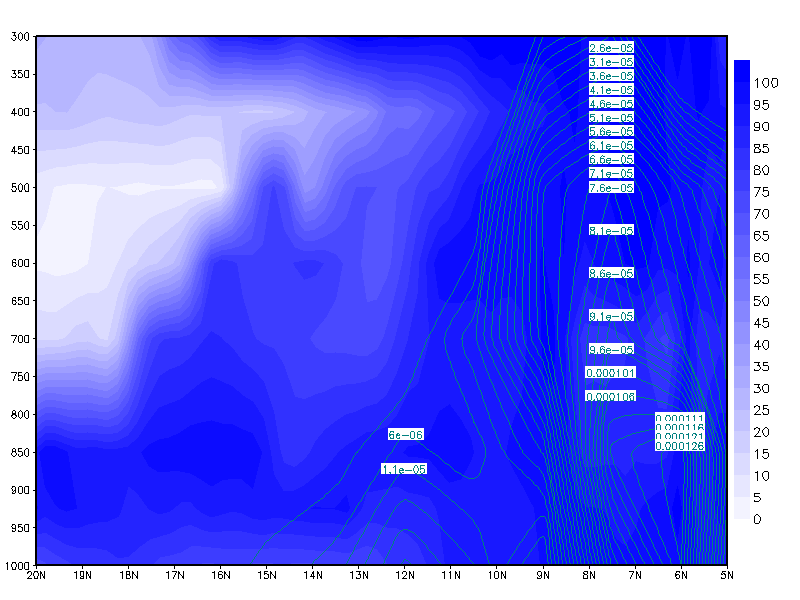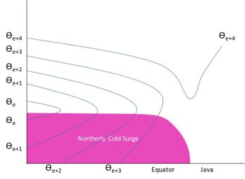 Conditionally unstable atmosphere induced by the strong cross-equatorial flow can be seen in the vertical structure of Θe.