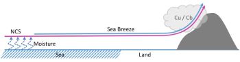 NCS affects the diurnal cycle in Java island. Vertical motion occurs at sea in nighttime, and during the day it occurs inland due to local topography.