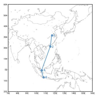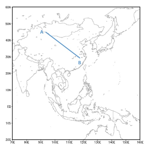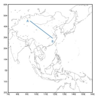 Temperature profile from Siberia (45°N 92°E) to Northeast China (30°N 115°E) after NCS initiation.