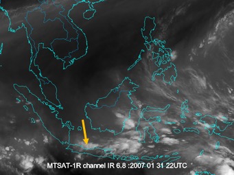 The strengthened and persistent northerly flow near the surface enhances the diurnal cycle in Java Island and the surrounding areas. Due to its topography, Java acts as the southern boundary of this strong cross-equatorial flow.