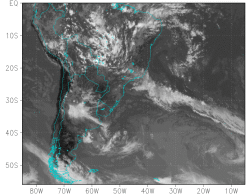 During austral summer (Dec-Feb) the upper tropospheric circulation over South America is characterized by the presence of a quasi-stationary high over Bolivia (know as Bolivian high) and a deep trough to its east over northeast Brazil and adjoining Atlantic Ocean (see Figure below). With certain frequency this trough closes forming upper tropospheric cyclonic vortices (UTCV - Kousky and Gan, 1981). The figure below shows an example of a UTCV over the northeast Brazil coast.