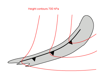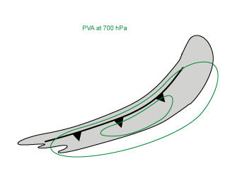 There is a trough on the top of the arctic frontal zone. - PVA 700 hPa