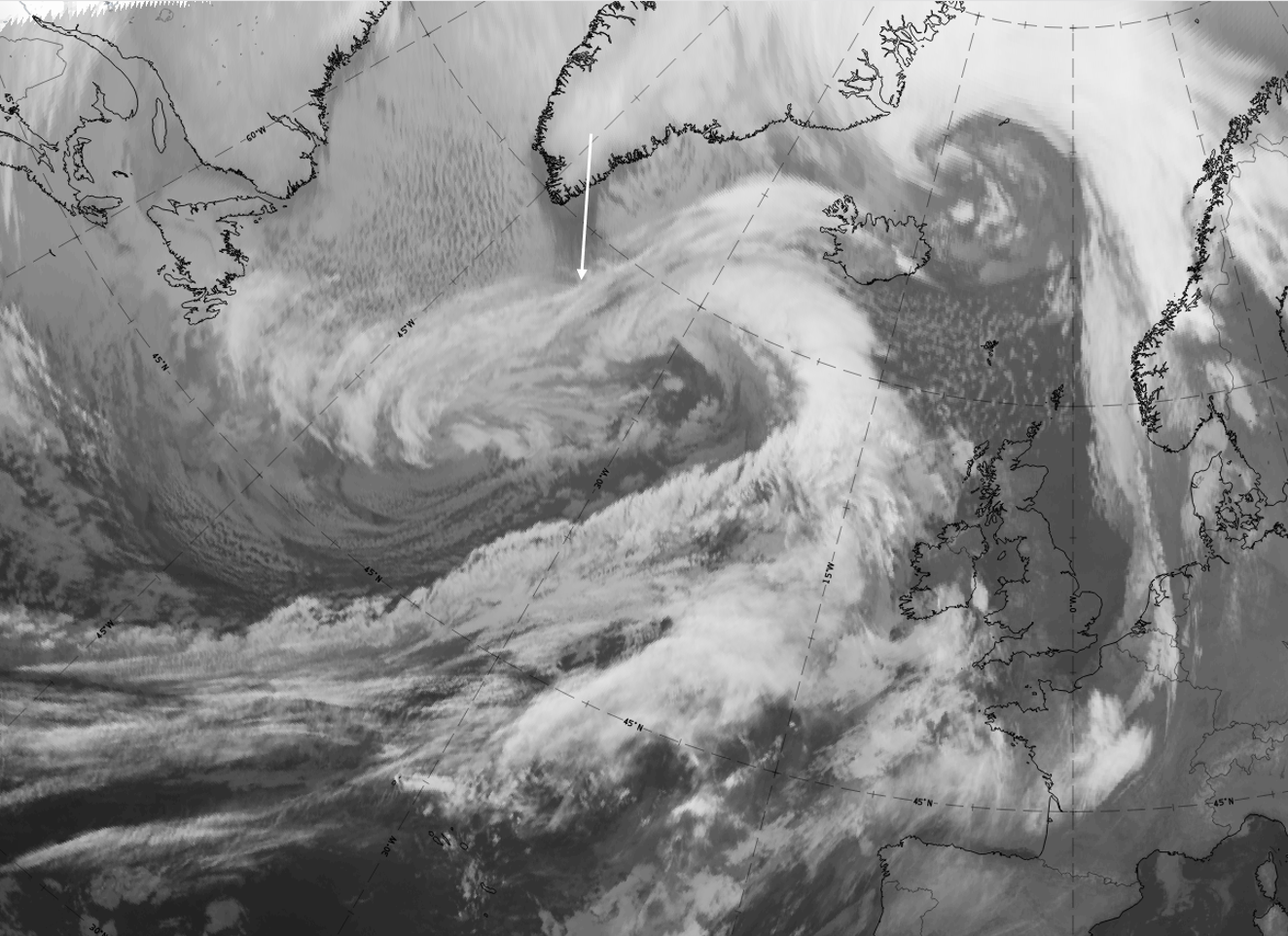 In most cases the cloud band related to the occluded front is long and broad, but there are also cases, especially in cold air masses, where the cloud band is short, narrow and somewhat inconspicuous in the satellite image