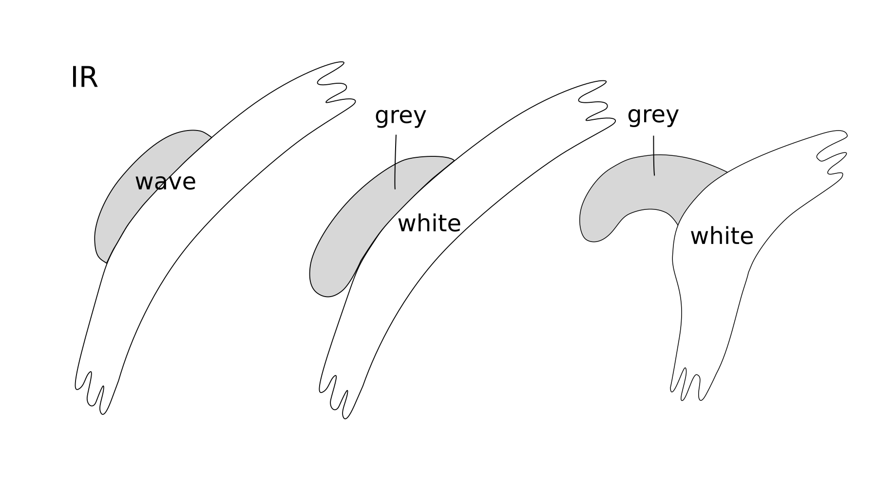 | WV | Differentiation of grey shades between CF-WF band and ccb occlusion spiral is particularly distinct. |