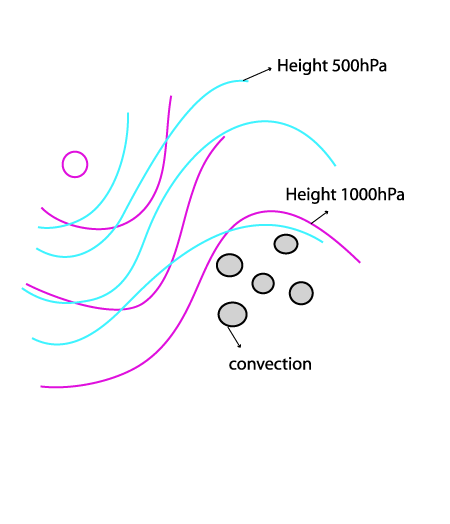 - In contrast to front related convection, development can take place within a low and upper level ridge