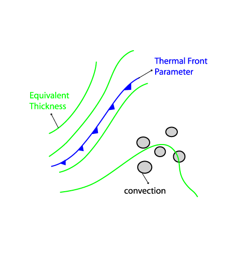 - Initiation of convection in clear weather is not related to a significant gradient of equivalent thickness nor any distinct Thermal Front Parameter