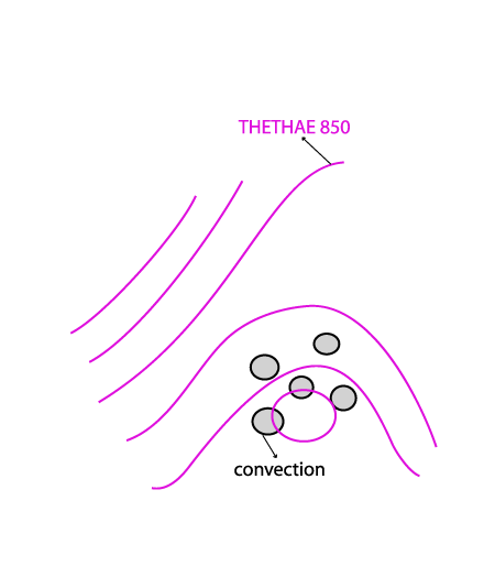 - Ridge and/or a maximum of ThetaE 850 hPa
