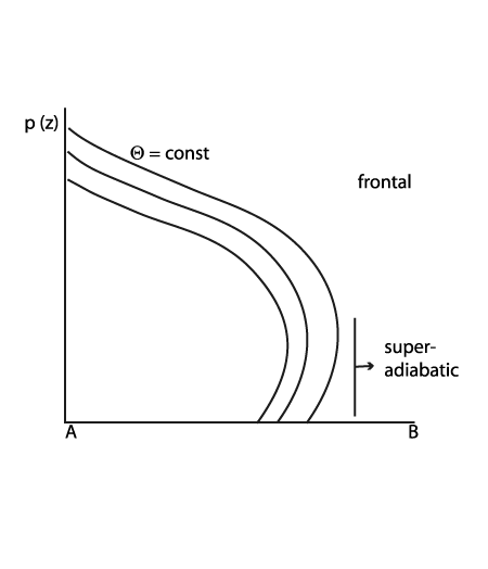A cross section of the synoptic environment of MCSs along the leading edge of a frontal cloud band is characterised by the following features: