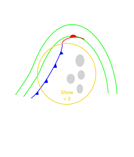 The above diagrams show a cross section across the frontal cloud band and the MCSs which have developed ahead of the cloud band.