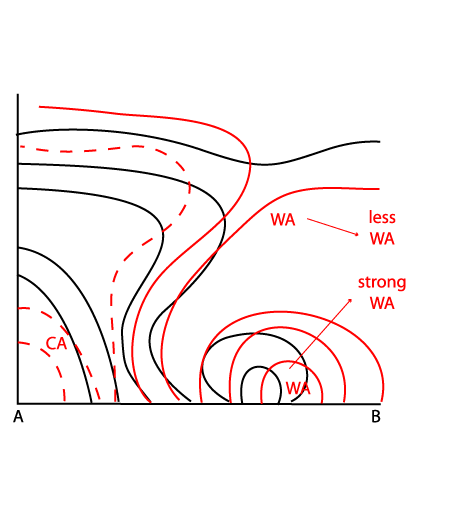 WA is associated to the MCSs and will contribute slightly to the upward motions. Not surprising, WA is found ahead and aloft of the Cold Front