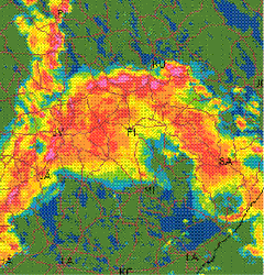 See chapter Key parameters for typical radar products. In CAPPI products the following features typical for MCSs can be seen, although they are not very clear in every case (depending also on the position of the radar compared with the convective system).