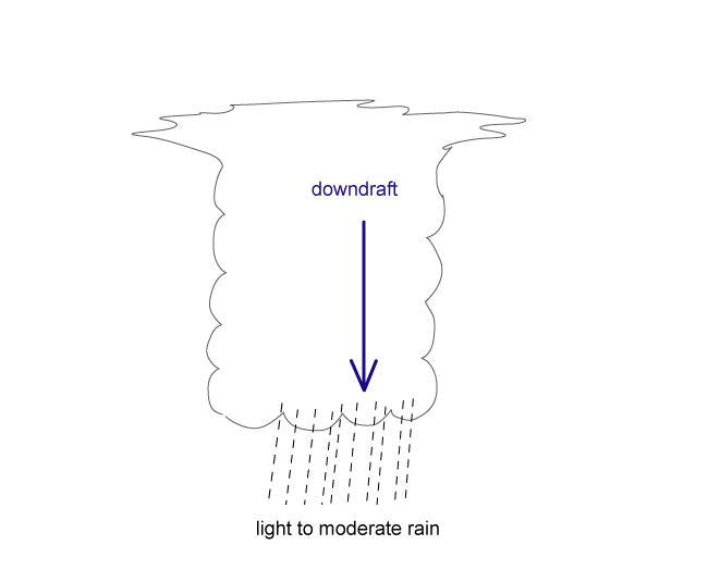 - Downdrafts develop and are accelerated as a consequence of cooling by the evaporation of cloud droplets
