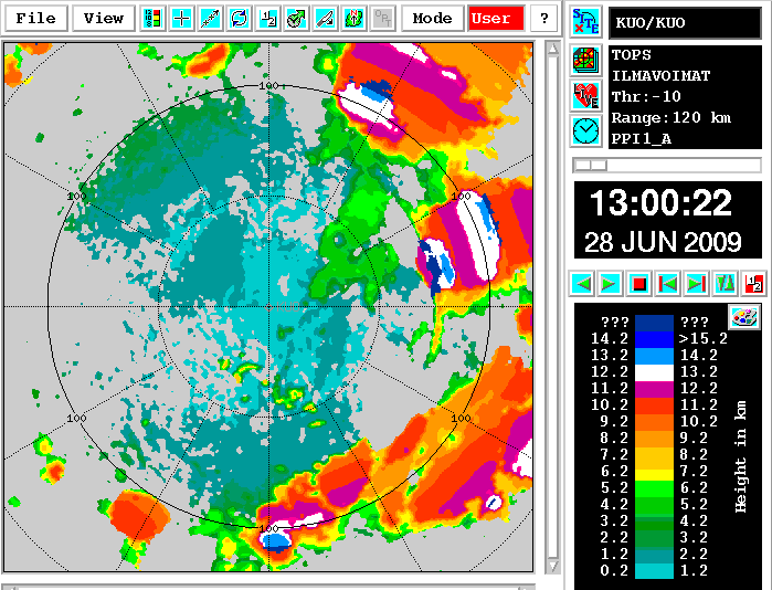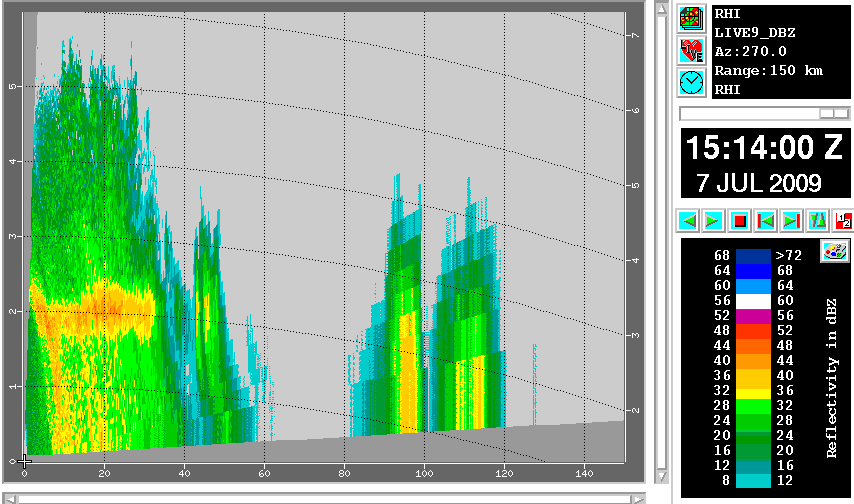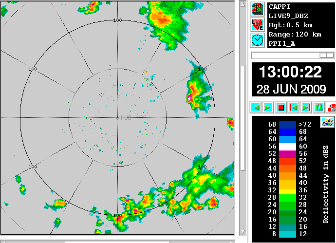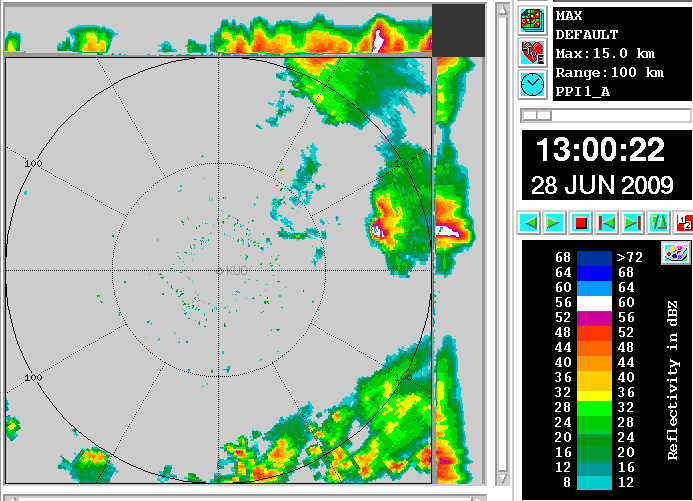 See chapter Key parameters for typical radar products. In CAPPI products the following features typical for MCSs can be seen, although they are not very clear in every case (depending also on the position of the radar compared with the convective system).