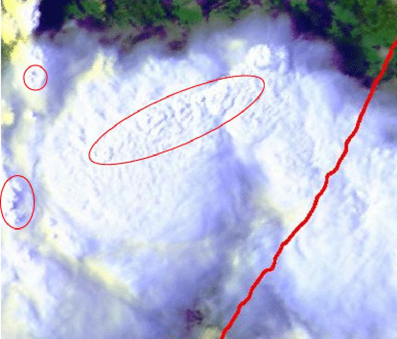 - Cloud top temperature below -32°C: in the case of circular type for an area with diameter of 100-500 km and in the case of oval type for a major axis of 200-900 km