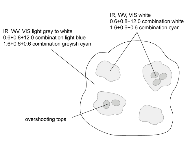 - In AVHRR imagery the brightest individual cells embedded in a Multi Cell Storm can be detected better than in Meteosat 8 images. Also the overshooting tops of strongest cells embedded in the cirrus anvil can be often be distinguished.