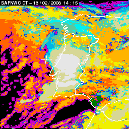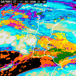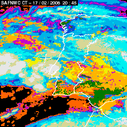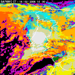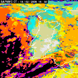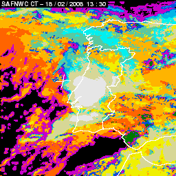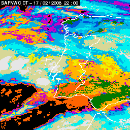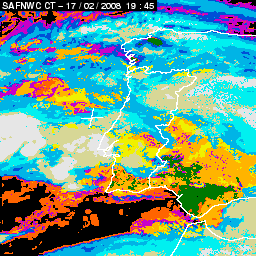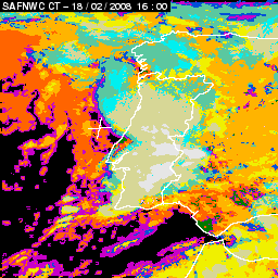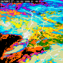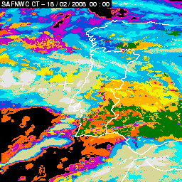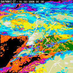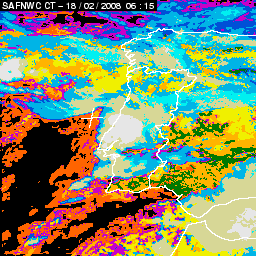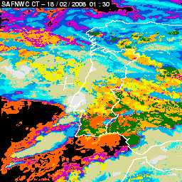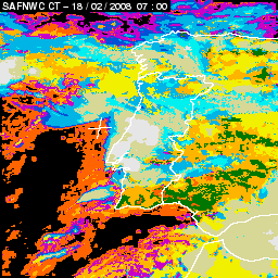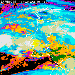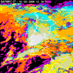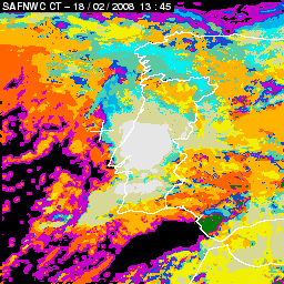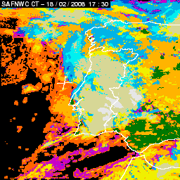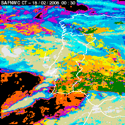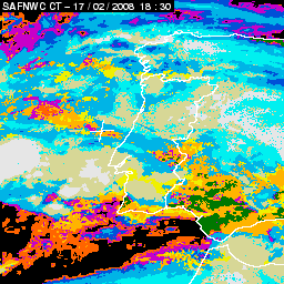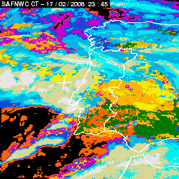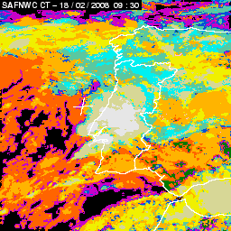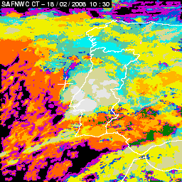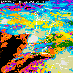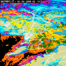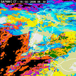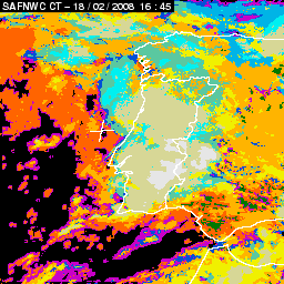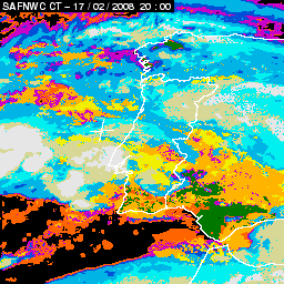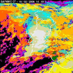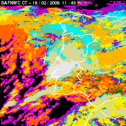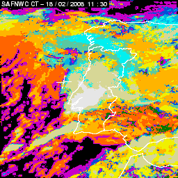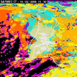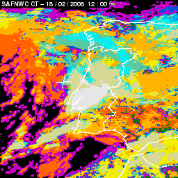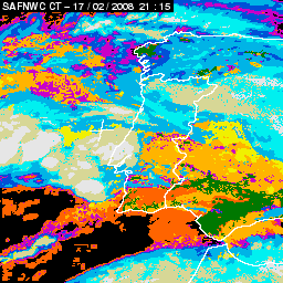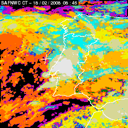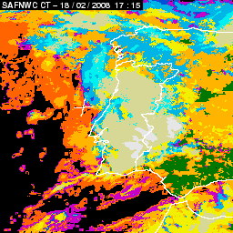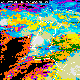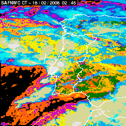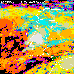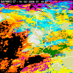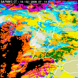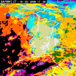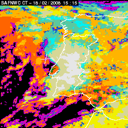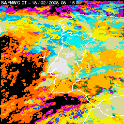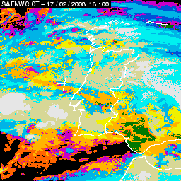 17 February 2008/18.00 UTC - Cloud Type Product; 17 February 18.00 - 18 February 18.00 UTC quarter-hourly image loop
