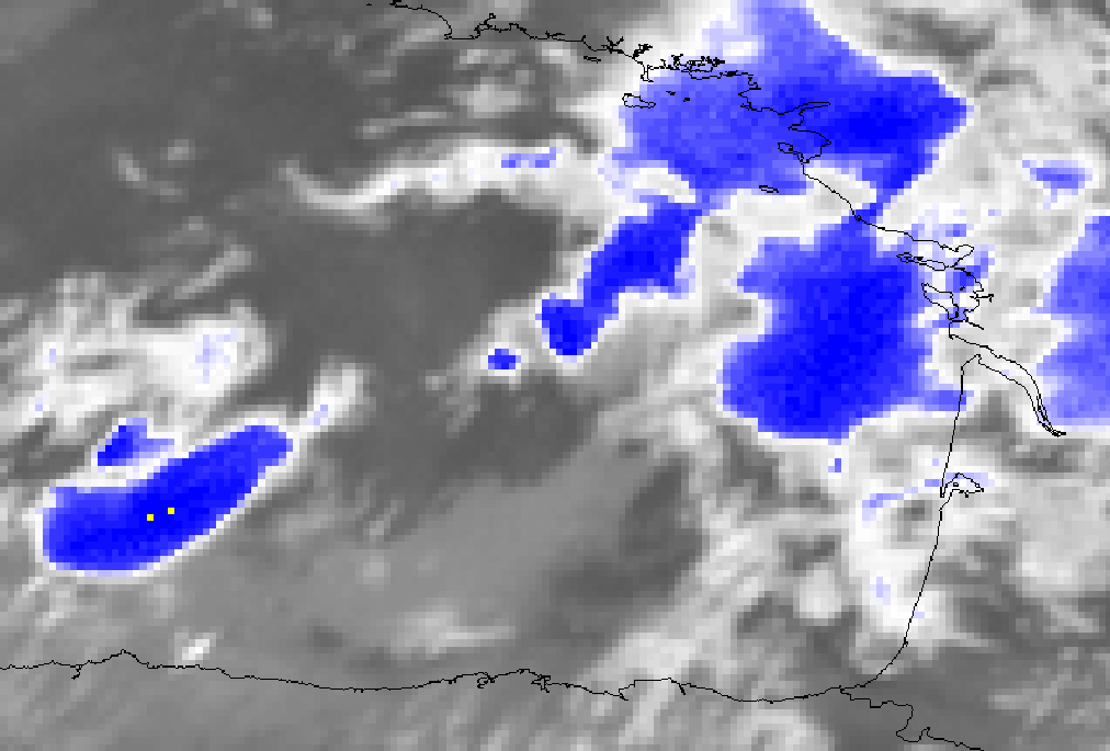 - Satellite imagery with an appropriate cold cloud top enhancement: