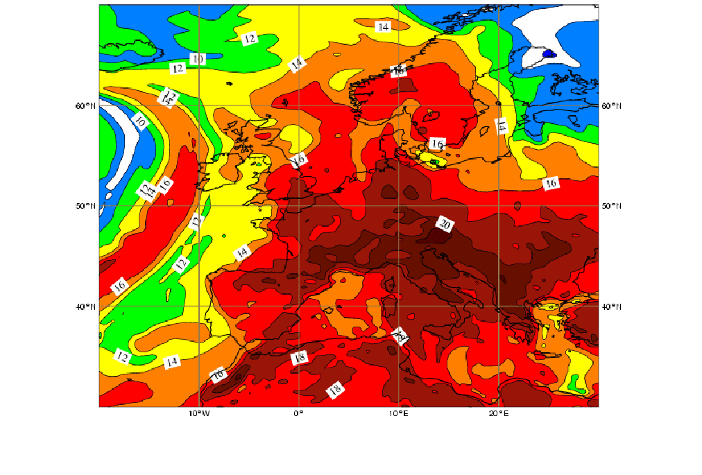 27 July 2006/12.00 UTC - Wet Bulb Potential Temperature 850 hPa