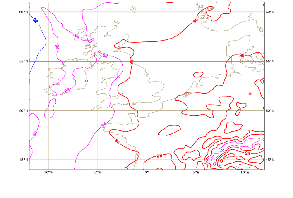 850hPa Wet Bulb Potential Temperature (Theta W)
