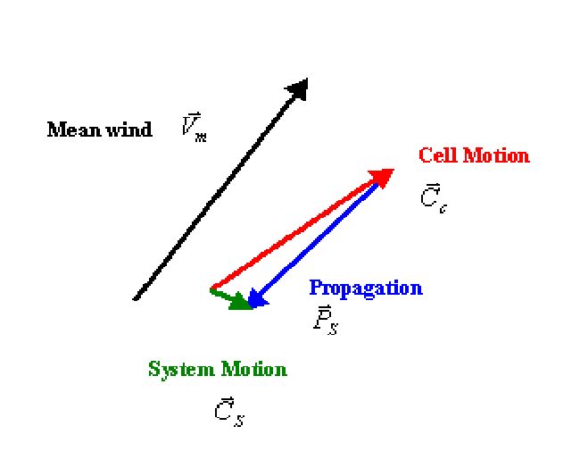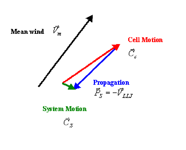 In latter studies, Corfidi (1998, 2003) updates the results referring that propagation for MCS does not necessarily occurs most rapidly in the direction of the LLJ, but rather in the direction of the largest system relative low-level convergence - this direction may or may not be the direction of the LLJ.