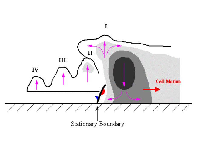 - New cell growth is favoured on the downwind side of the moving single cell where the lift is the greatest