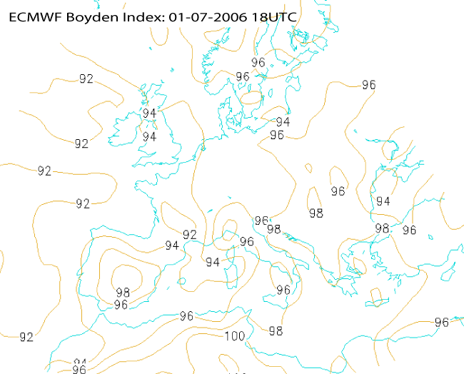 01 July 2005/18.00 UTC - ECMWF model analysis field, Boyden index