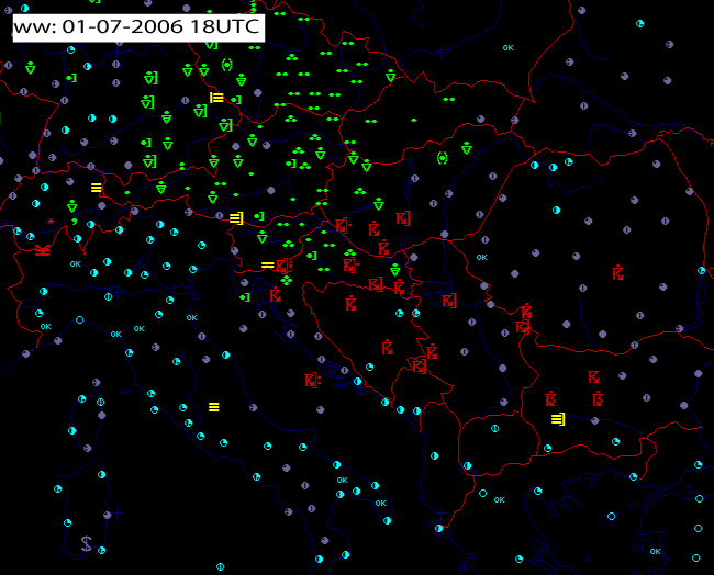 01 July 2005/18.00 UTC - synop observations in the area of interest