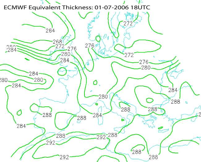 01 July 2005/18.00 UTC - ECMWF model analysis field, equivalent thickness