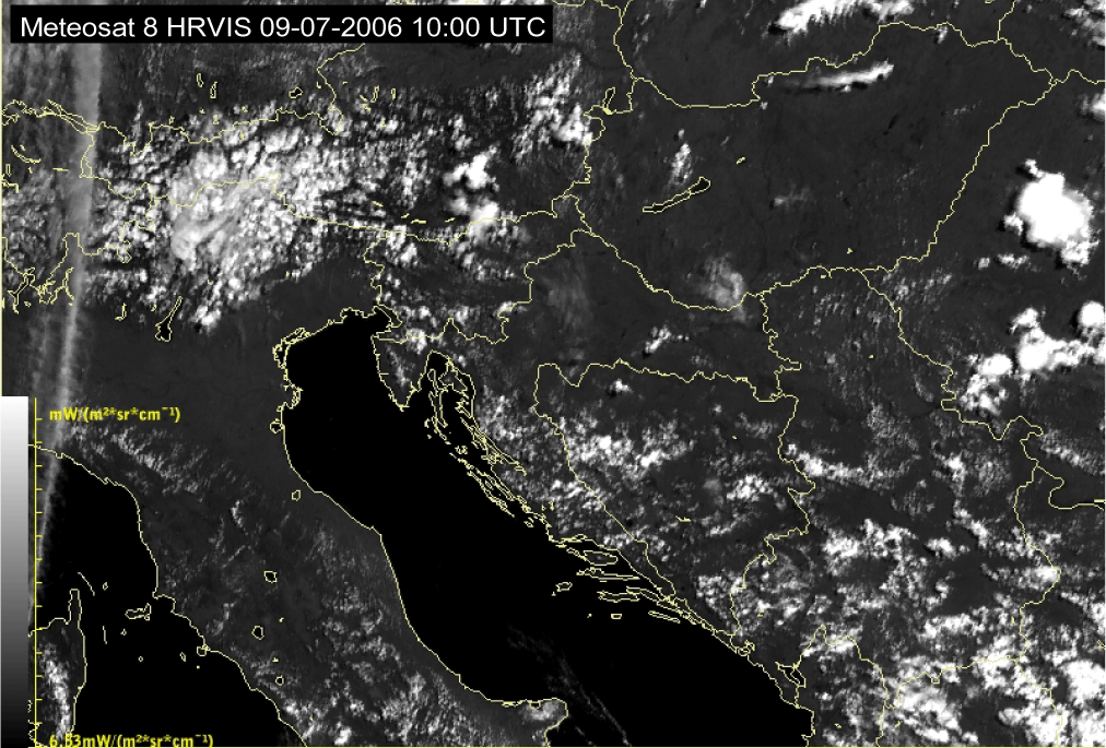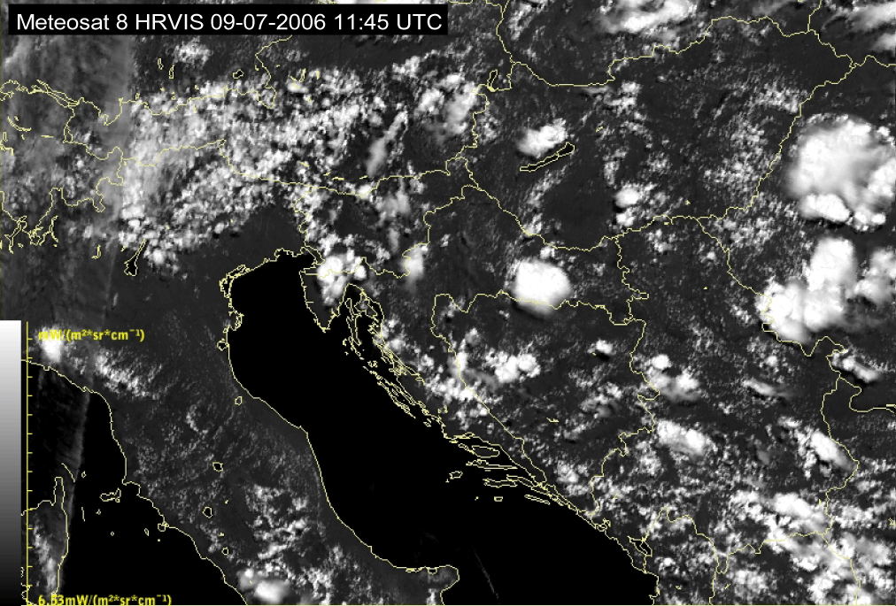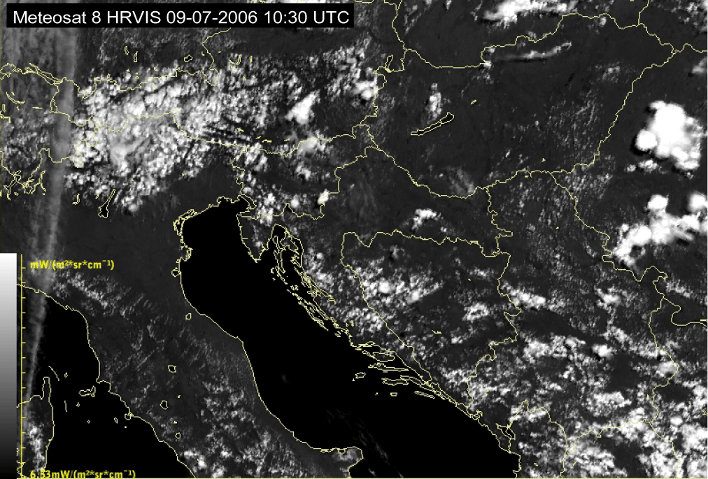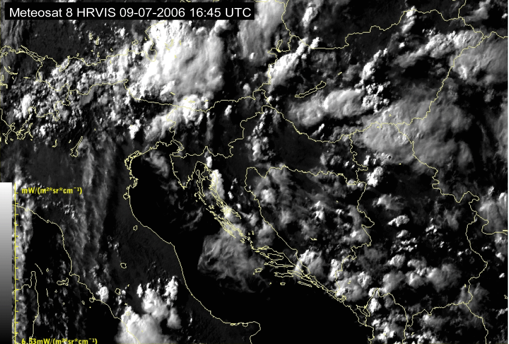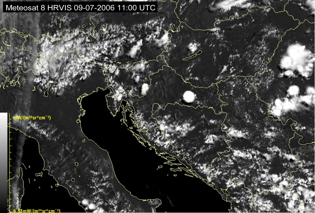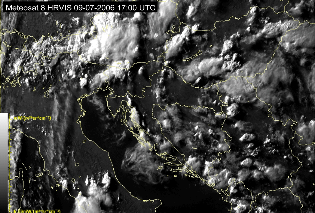 09 July 2006/10.00 UTC - Meteosat 8 HRVIS image; 10.00 UTC - 17.00 UTC quarter-hourly image loop