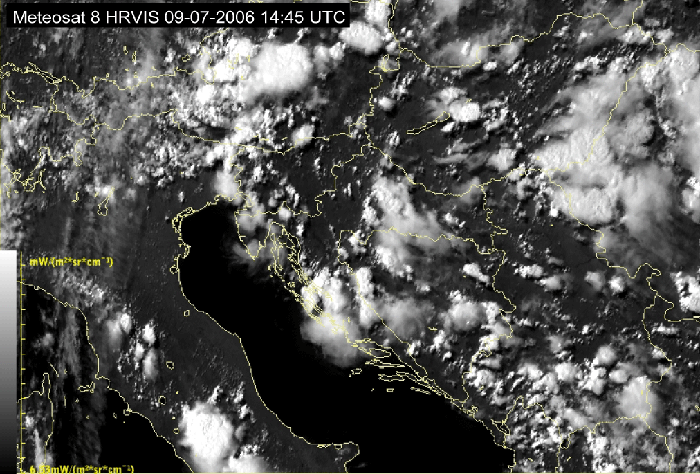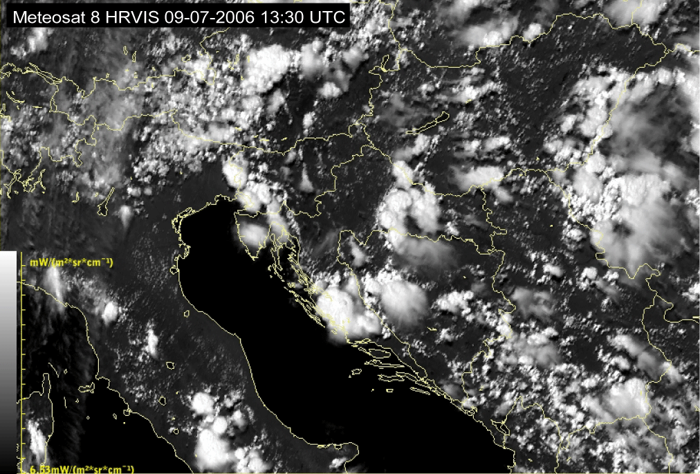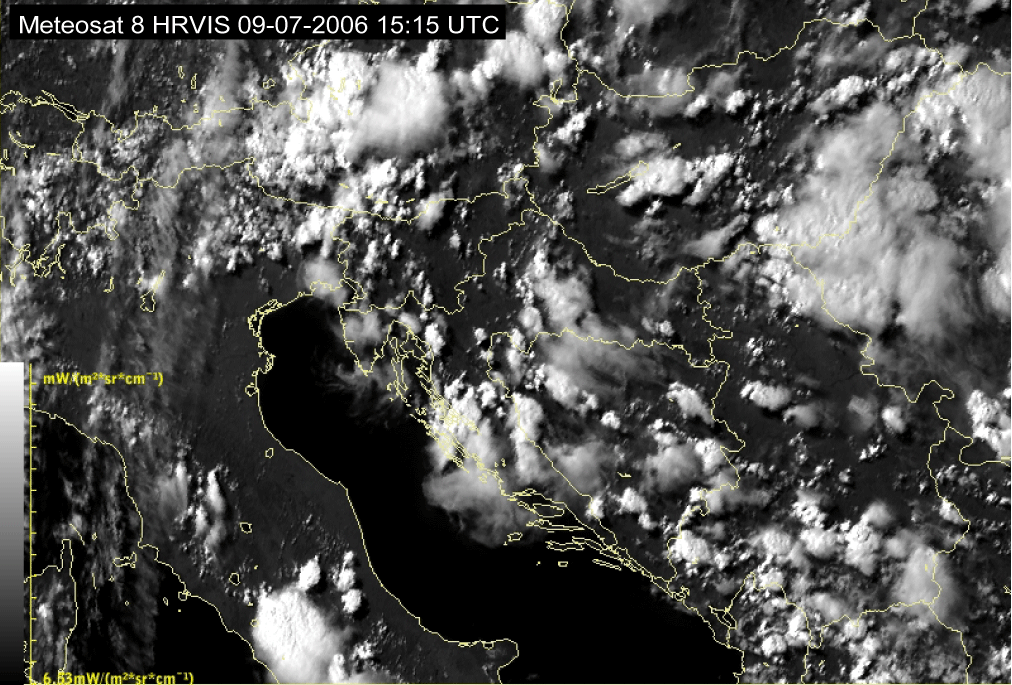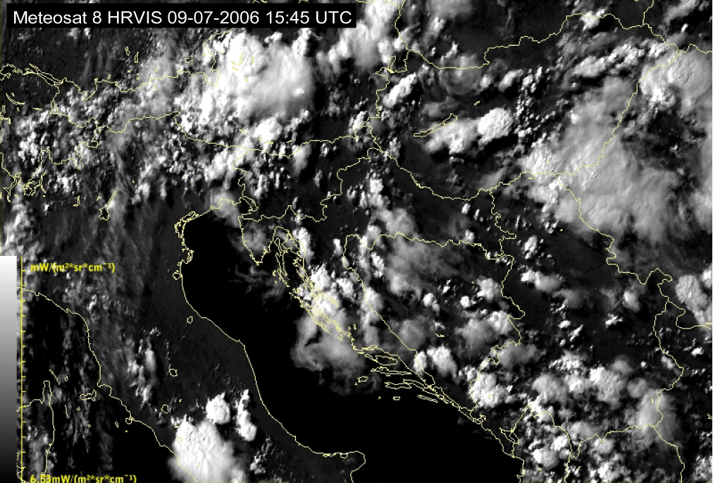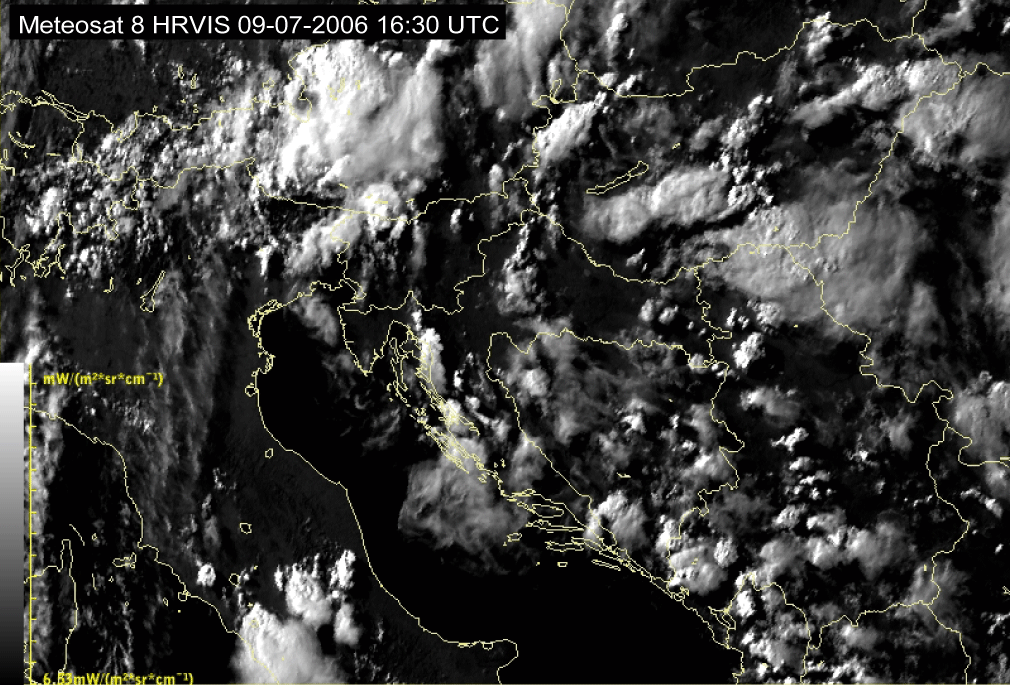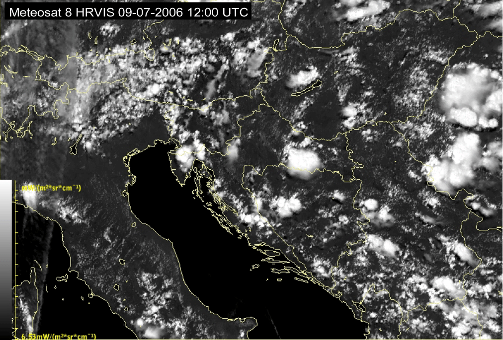 09 July 2006/10.00 UTC - Meteosat 8 HRVIS image; 10.00 UTC - 17.00 UTC quarter-hourly image loop