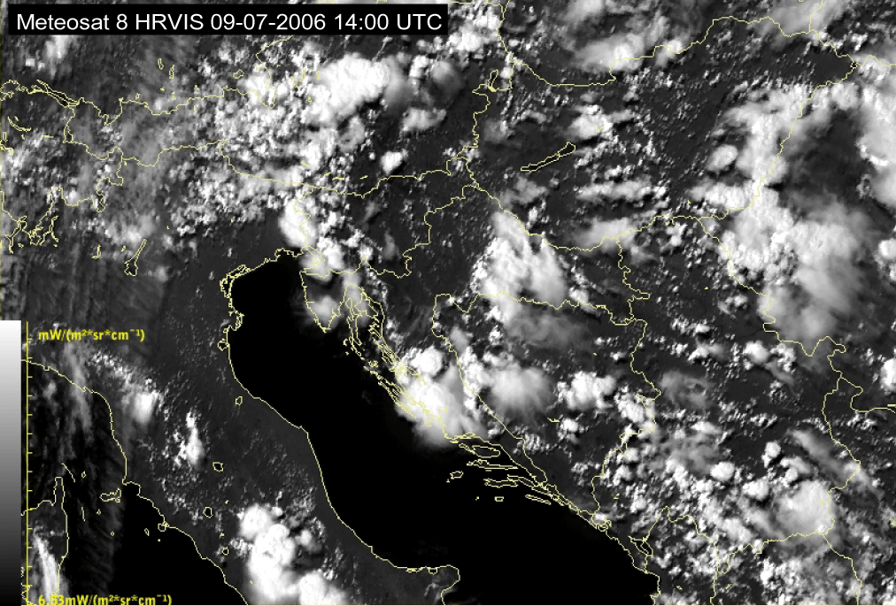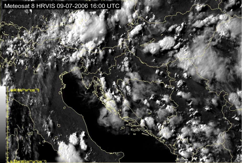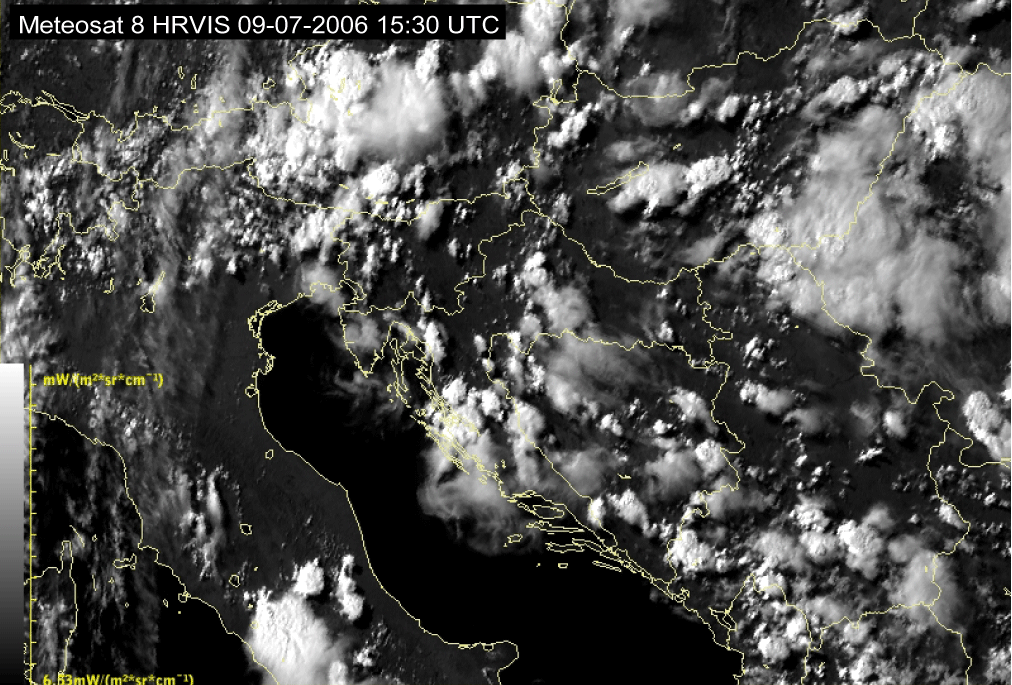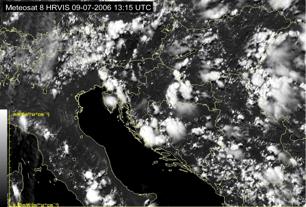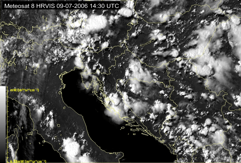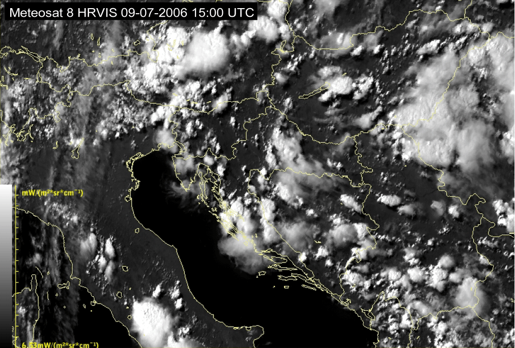 09 July 2006/10.00 UTC - Meteosat 8 HRVIS image; 10.00 UTC - 17.00 UTC quarter-hourly image loop