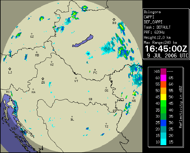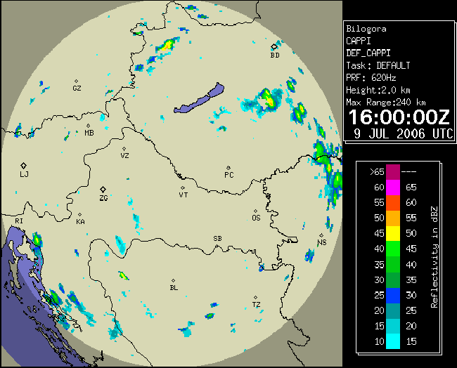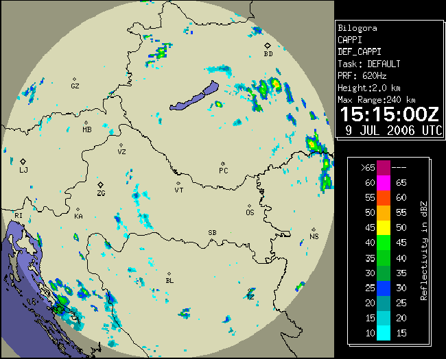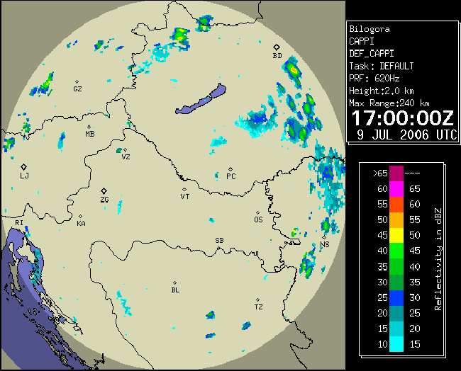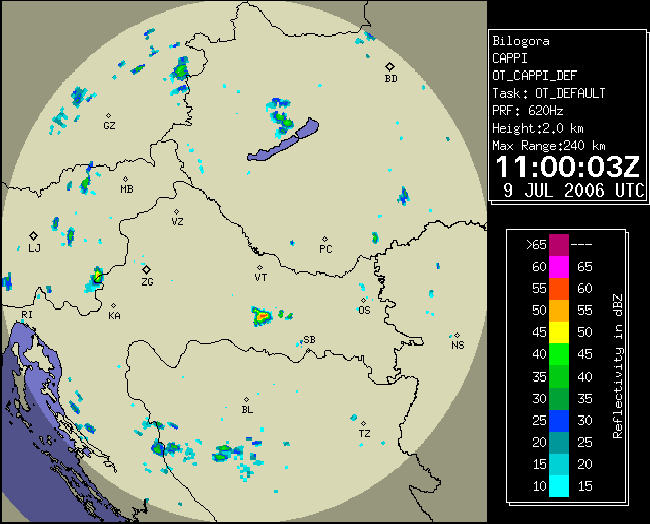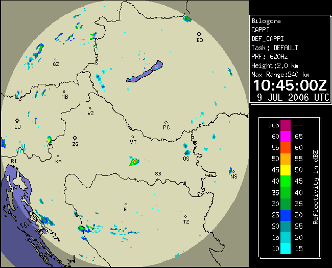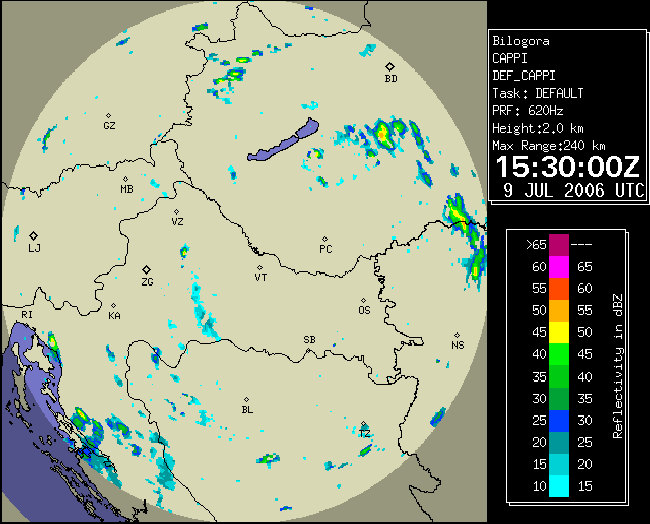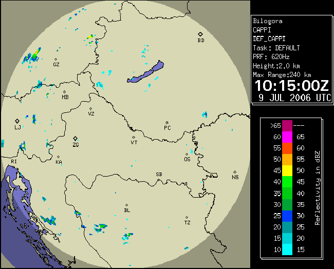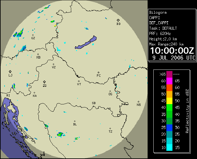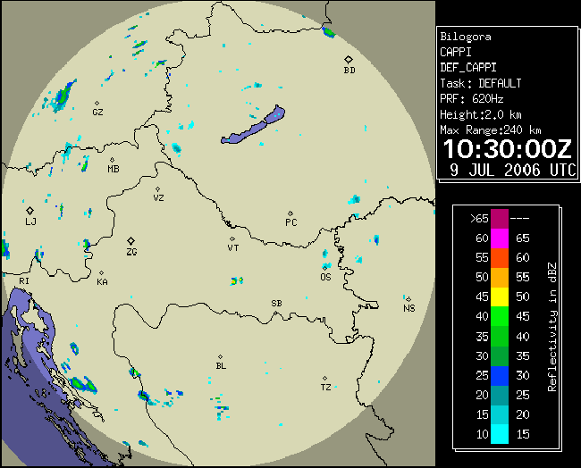 09 July 2006/10.00 UTC - Radar image; 10.00 UTC - 17.00 UTC quarter-hourly image loop