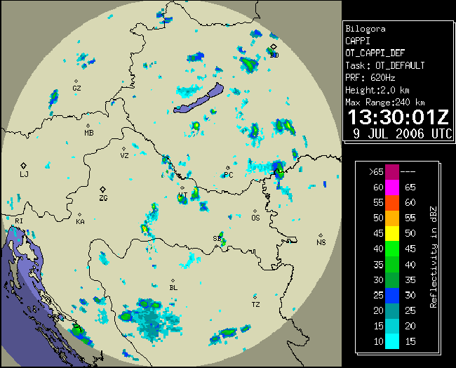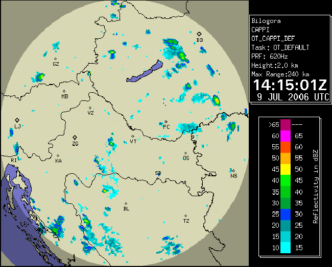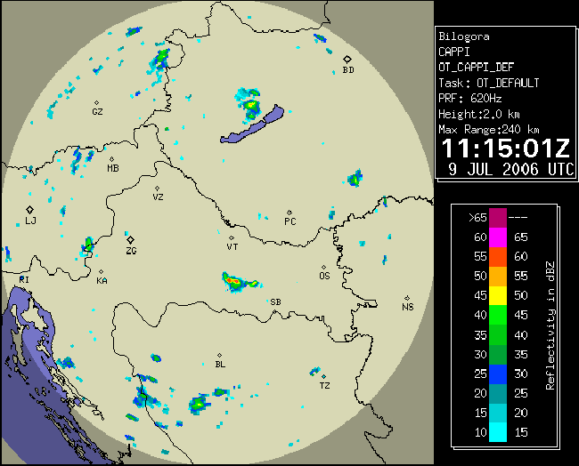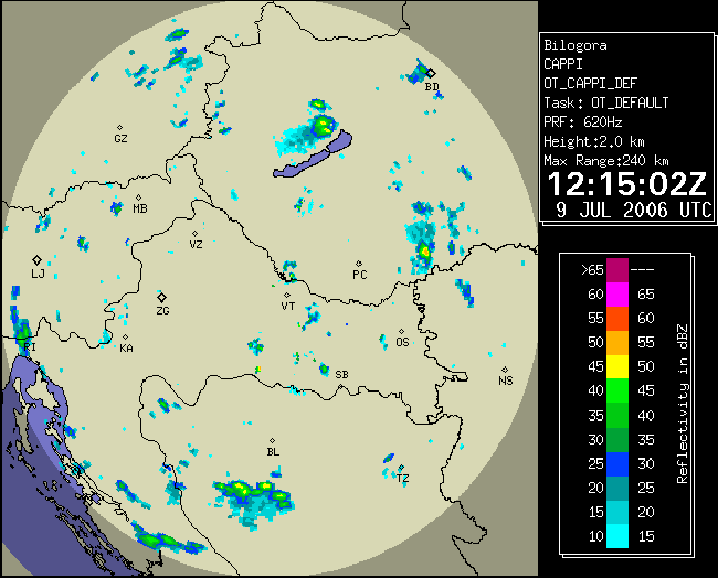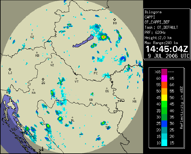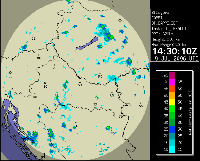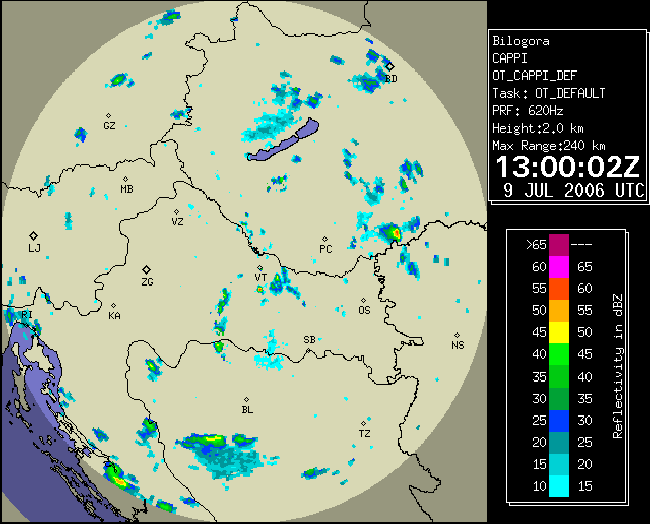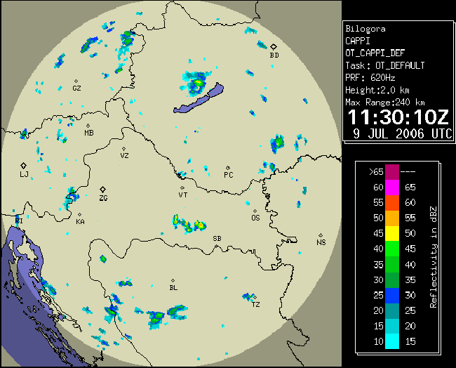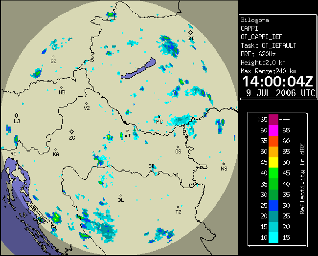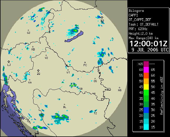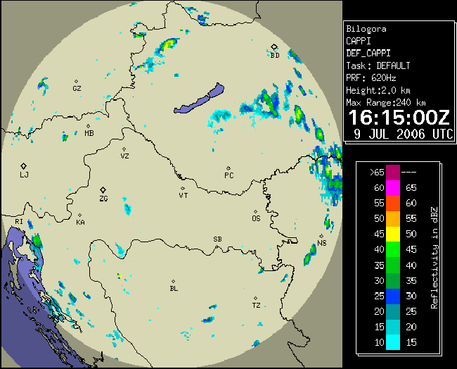 09 July 2006/10.00 UTC - Radar image; 10.00 UTC - 17.00 UTC quarter-hourly image loop