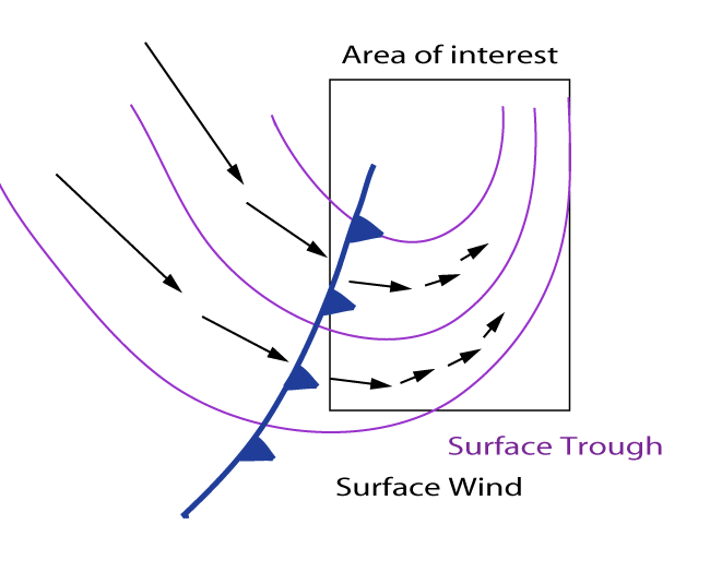 Environment favourable for development of convection, surface trough and convergence zone