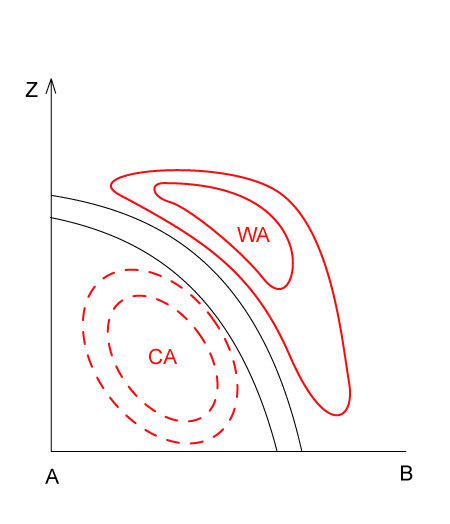- Kata Cold Front: cloudiness usually lies within WA, TA=0 within the cloud band