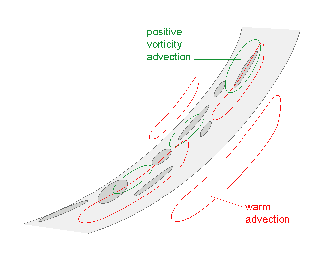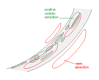 Positive vorticity advection at 500 hPa and temperature advection at 700 hPa: