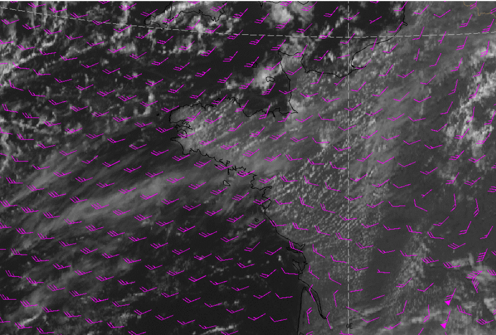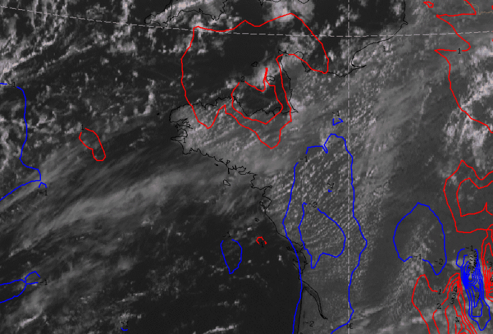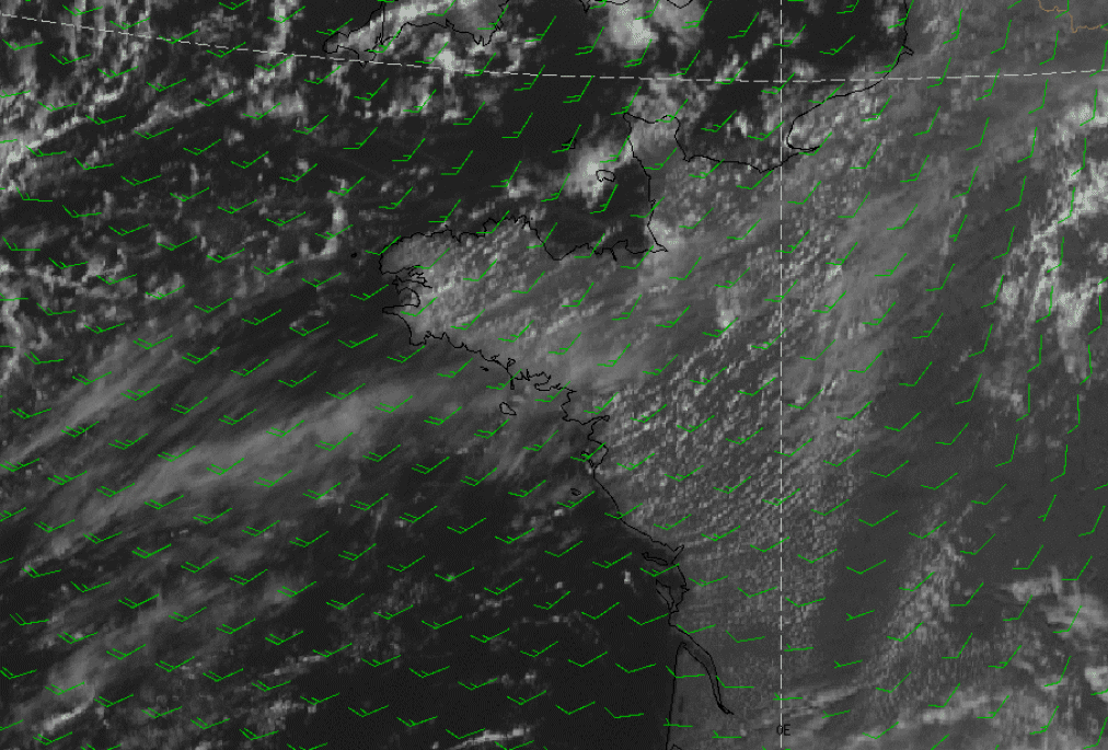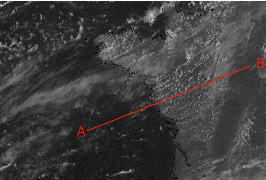 The NOAA AVHRR examples above show Cloud Streets over SW France, in Meteosat 7 imagery the indiviual streets cannot be distinguished. In NOAA and Meteosat 8 (HiresVis) imagery, the detailed structure can be observed well.