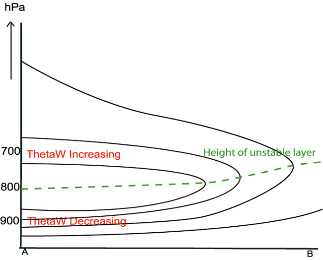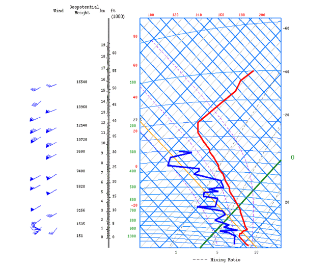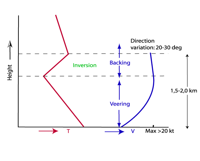 In the unstable layer, the winds tend to increase with height and usually show a wind profile that slightly veers with height. However, numerical models do not always show the small scale wind variations which can be found from radiosonde data (dicussed in the Meteorological Physical Background). - Temperature advection