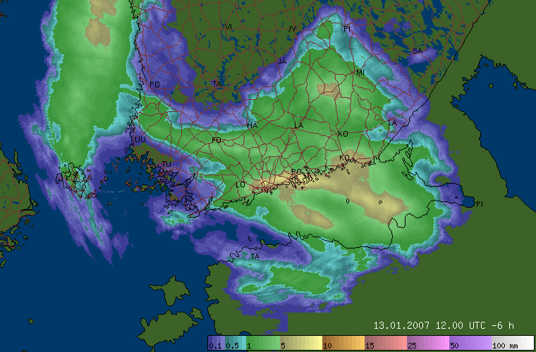 13 January 2007/12.00 UTC - 6h accumulated precipitation
