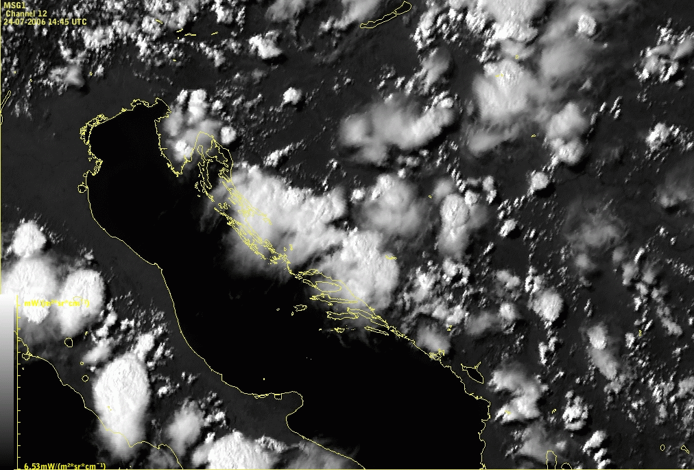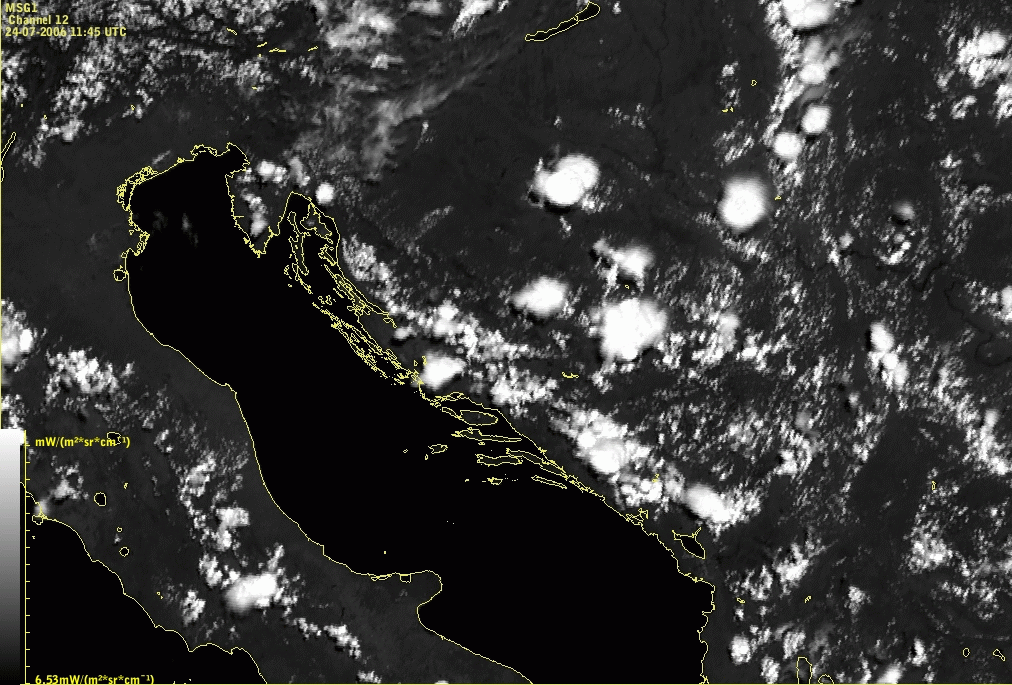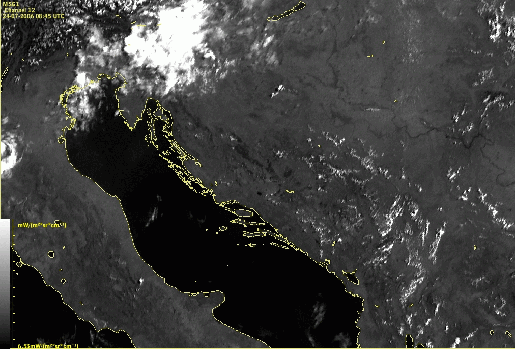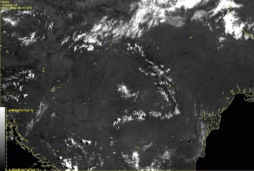 It should be mentioned here that the time stated in the top left corner of the images is the time of the beginning of the scan over the south pole. In the mid-latitudes of the northern hemisphere the time of the image is almost 15 minutes later, therefore the time in the captions under the images differ from the time in the image for 15 minutes (the time in the captions is closer to the real time). This is valid for all Meteosat 8 images used in this Conceptual model.