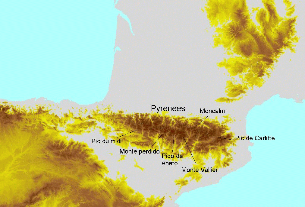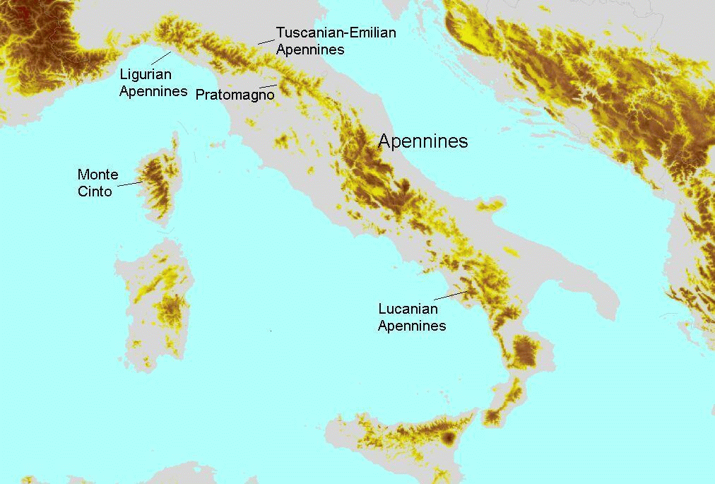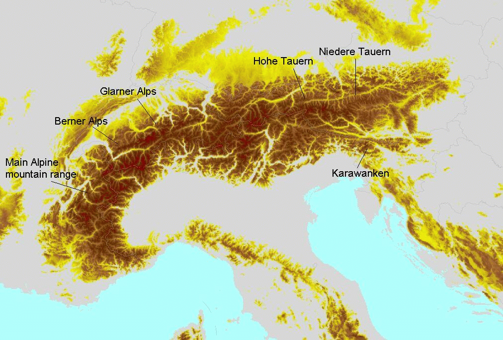 In Western and Central Europe, such lines can often be found over the Pyrenees, the Central Mountains in France, over the Alps, the Carpathian Mountains, in Italy over the Apennines, over the Dinaric Alps, the mountains on the Peloponnesian and the Pindos mountains with continuation to Macedonia.