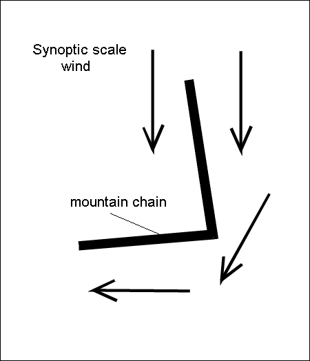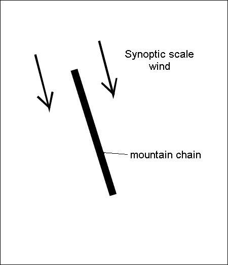parallel to the mountain chain. For the most of the mountain chains studied this means a northerly synoptic-scale flow, whereas in some