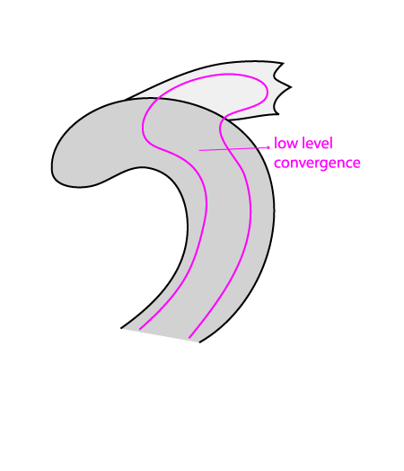 - North of an Occlusion another frontal system is passing by and a zone of confluence is developing