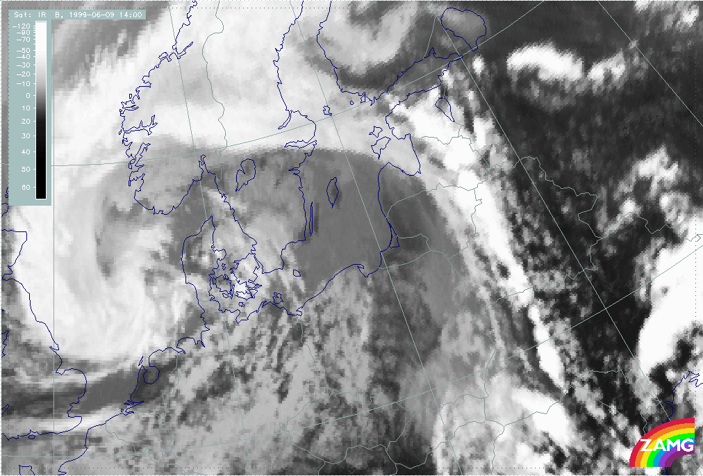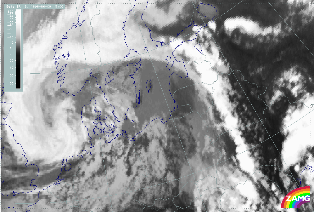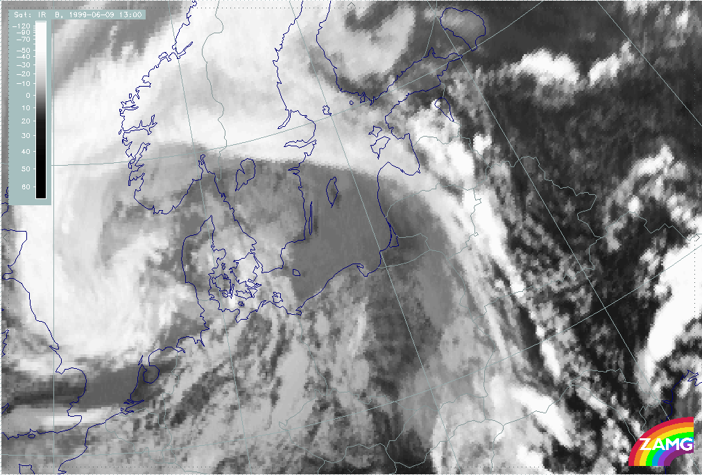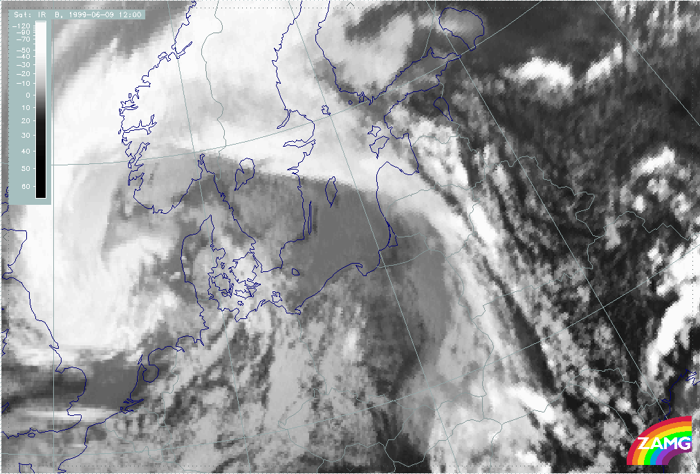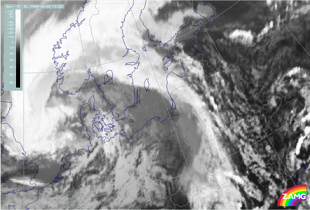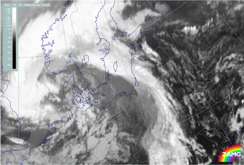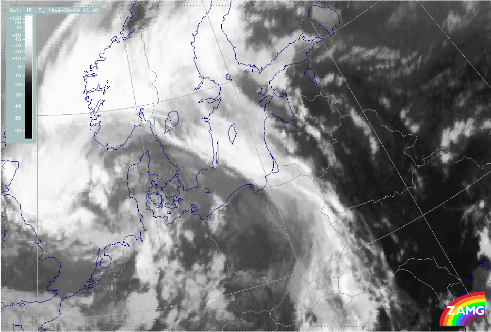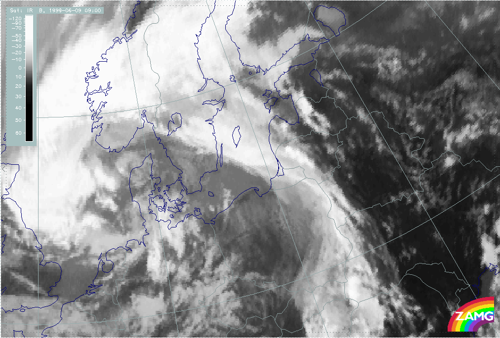 09 June 1999/06.00 UTC - Meteosat IR image; 09.00 - 16.00 UTC hourly image loop