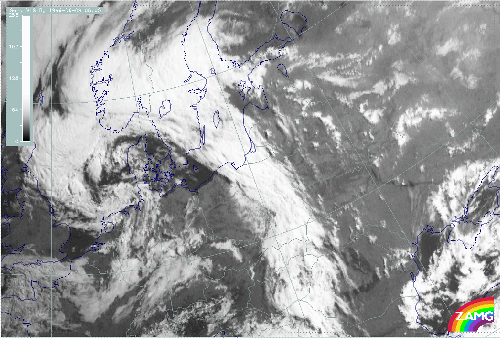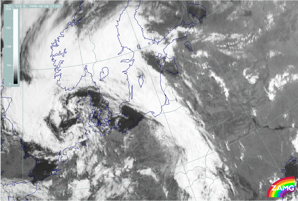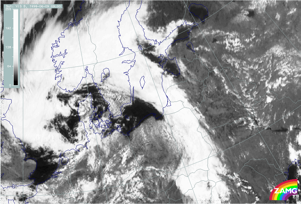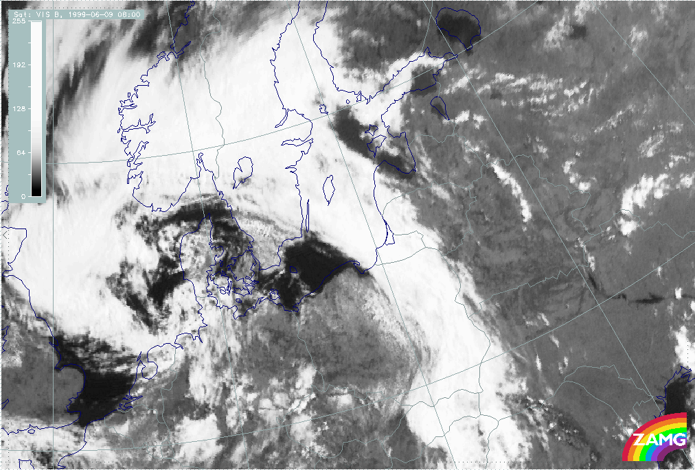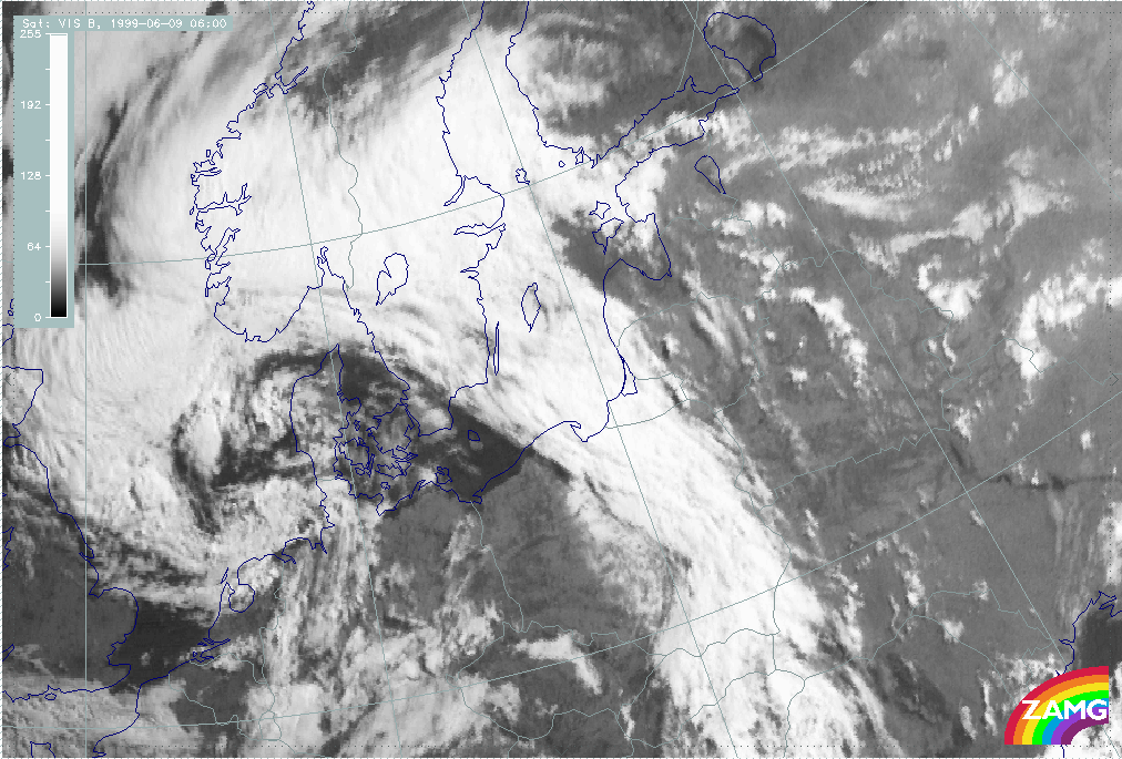 09 June 1999/06.00 UTC - Meteosat VIS image; 09.00 - 16.00 UTC hourly image loop
