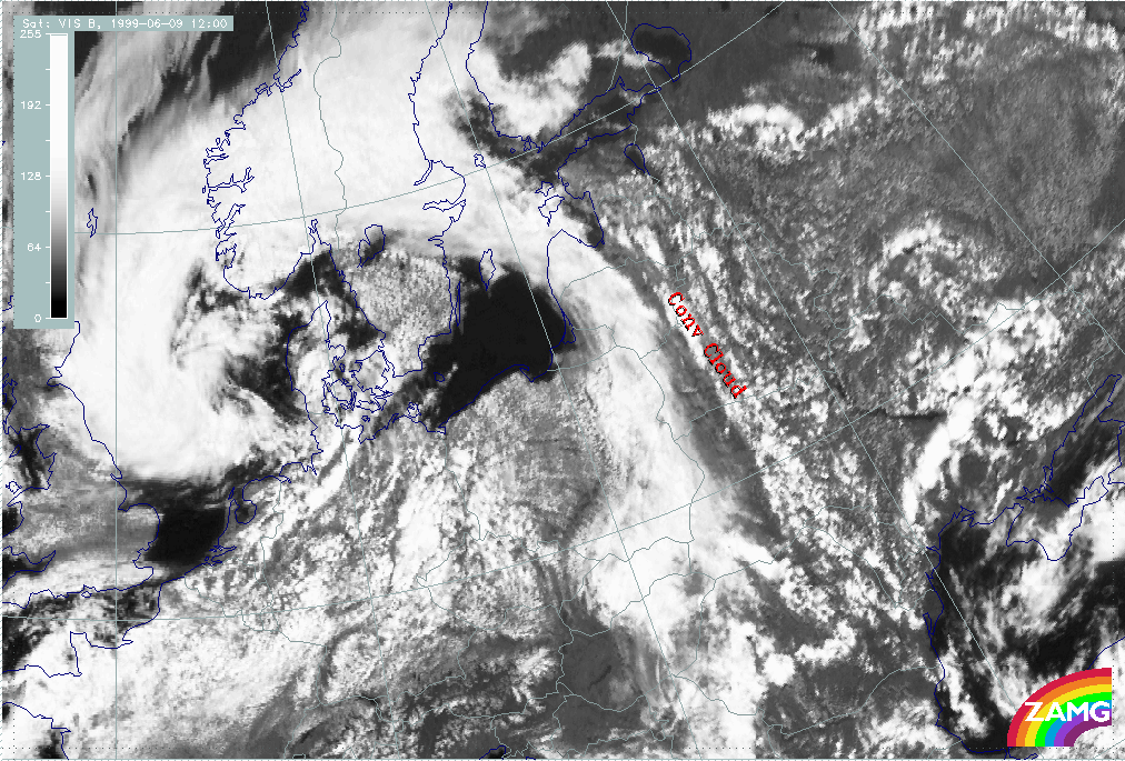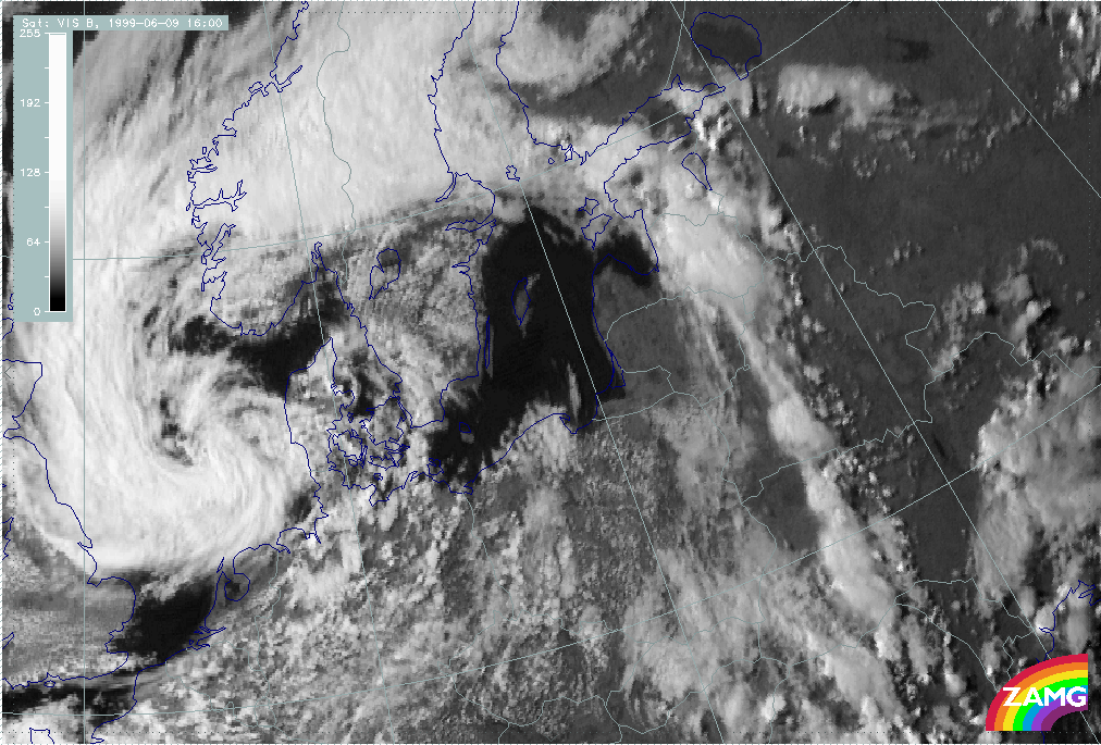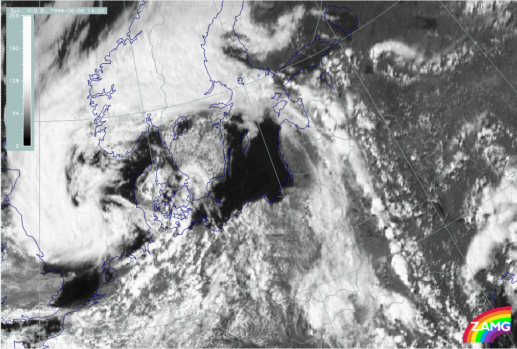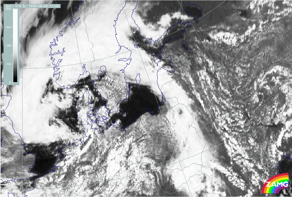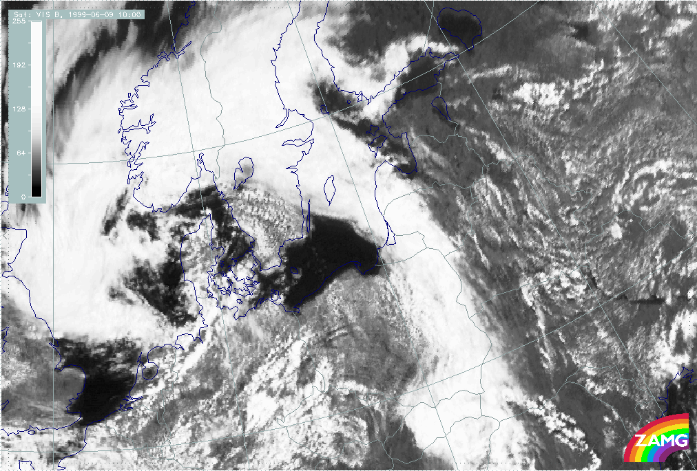 09 June 1999/06.00 UTC - Meteosat VIS image; 09.00 - 16.00 UTC hourly image loop