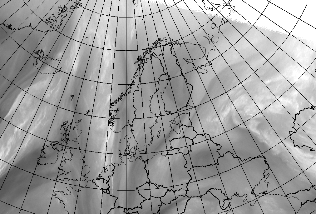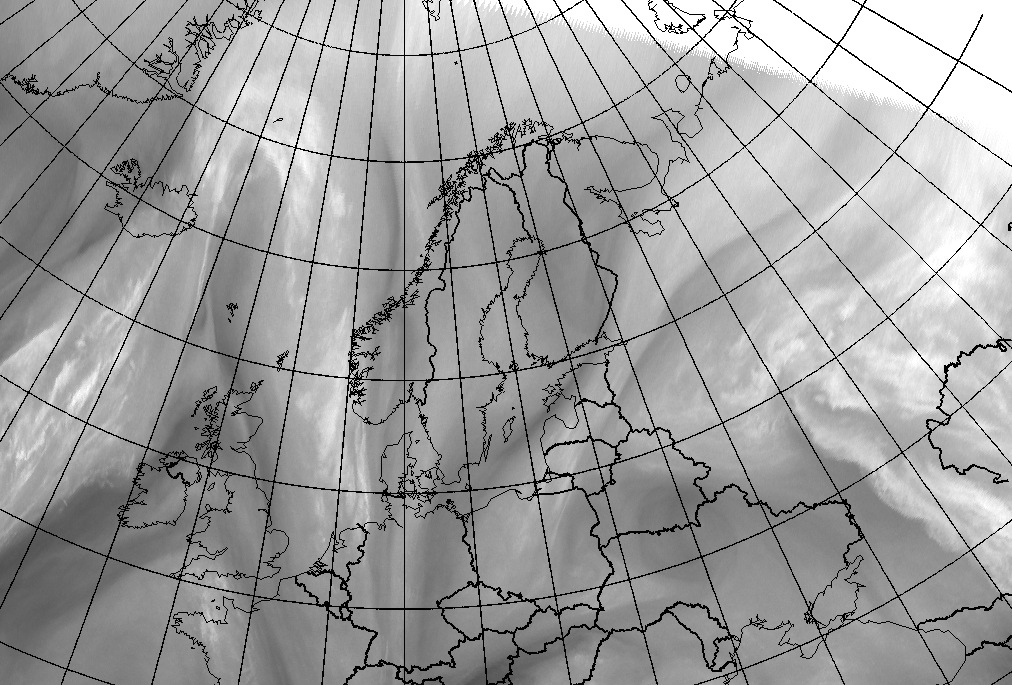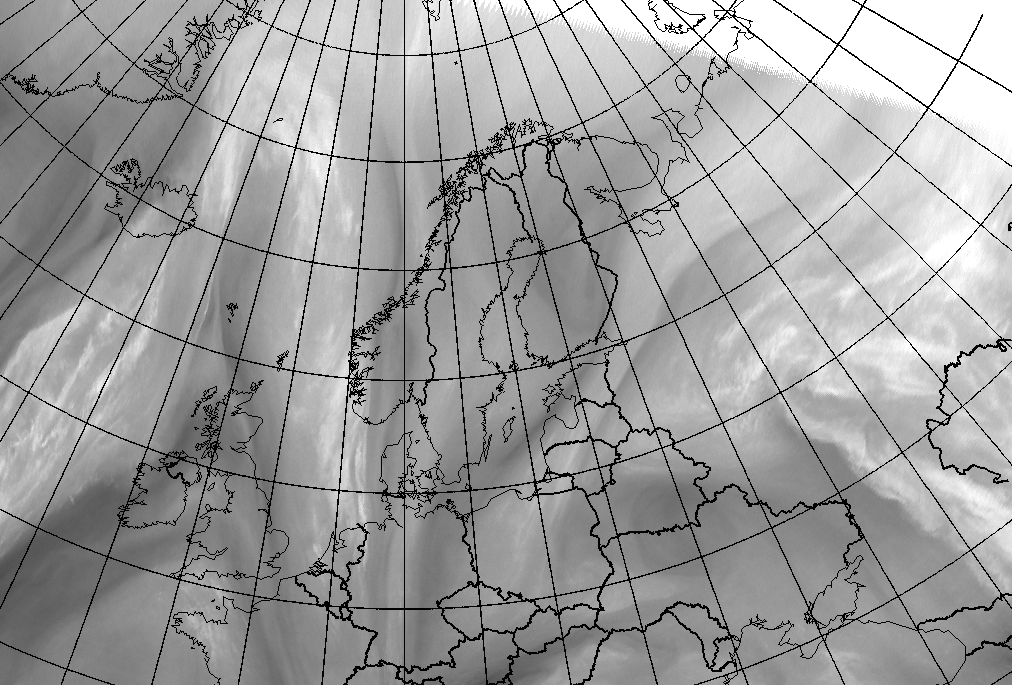 In this loop a Deformation Band stretching from Poland to White Sea gradually narrows and elongates while being stationary. Loop shows WV 6.2 images 18 February 2009 hourly from 00.00 UTC to 07.00 UTC.