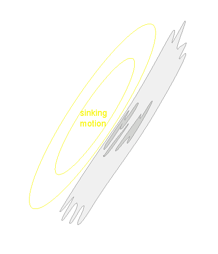 Weak or moderate sinking motion at, and on the cold side of the deformation zone