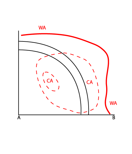 • Temperature advection: The decaying part of the frontal cloud band is completely positioned in CA at all levels, or at least only at upper or lower levels.